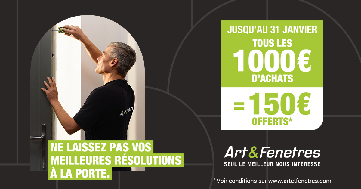 150€ offerts tous les 1000€ d’achats sur toute notre gamme de produits / Art & Fenêtres – jusqu’au 31 janvier 2026 Le 19/01/2026 à 08h54